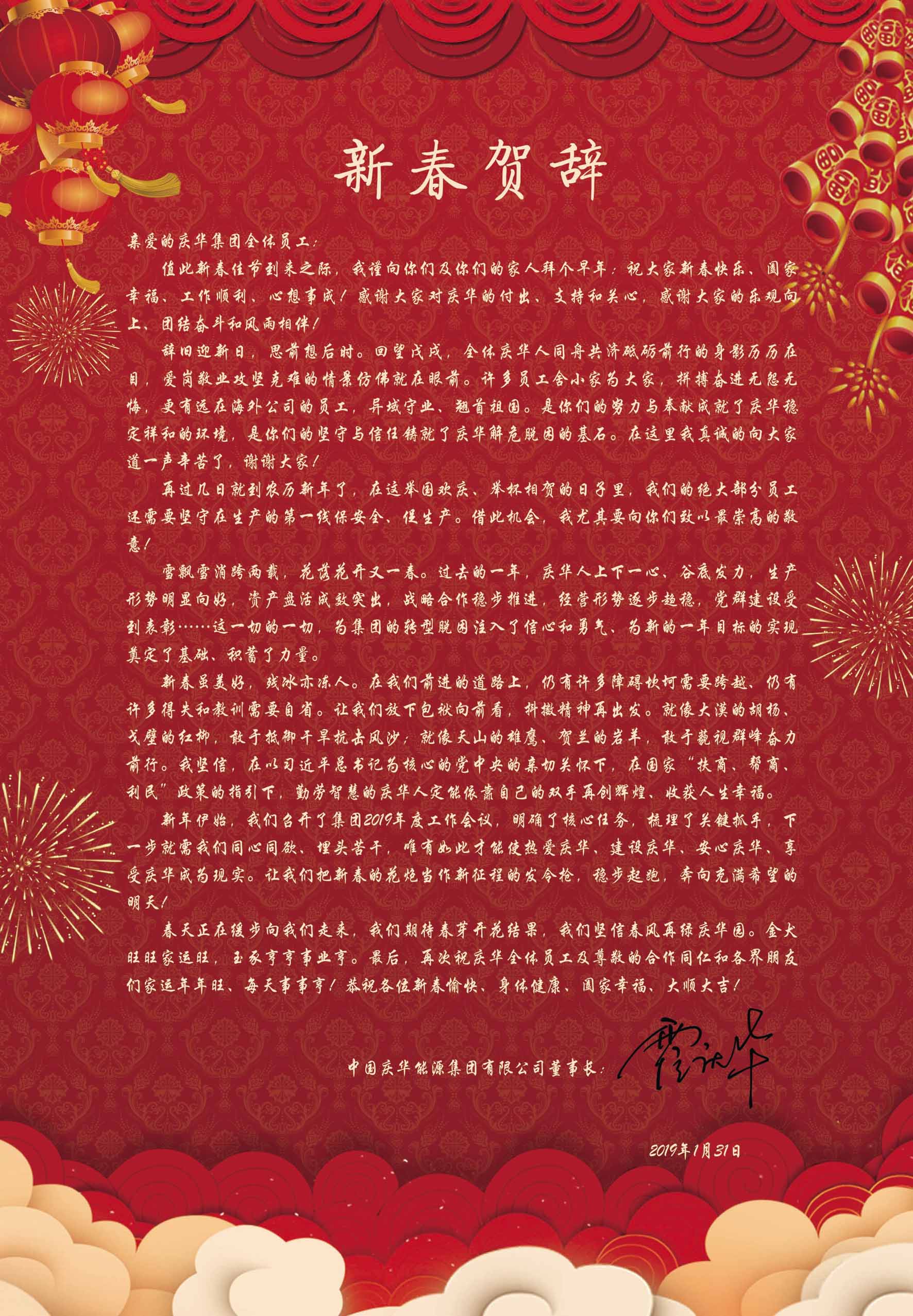 中国庆华能源集团董事长新春贺辞